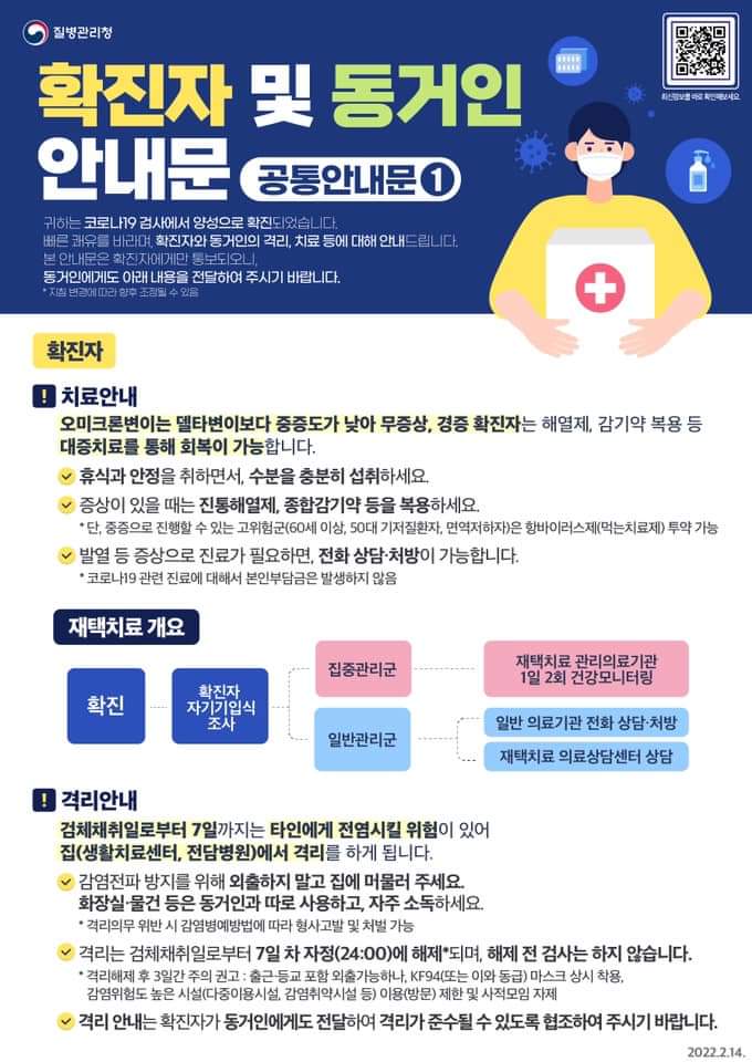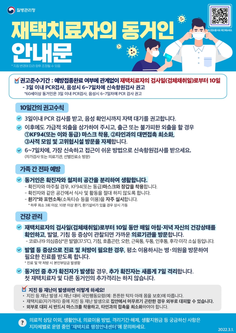 코로나19 재택 치료 생활수칙, 확진자 및 동거인 생활 수칙